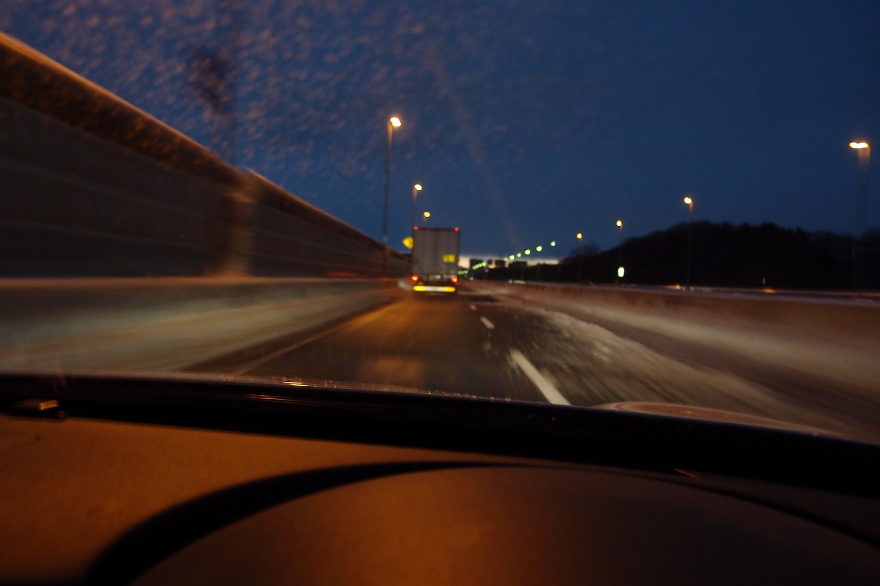 意外と雪は少ないですが右車線に雪が散らばって走り辛いです。