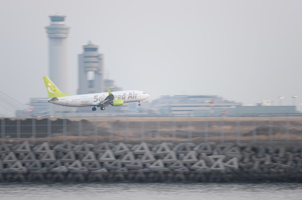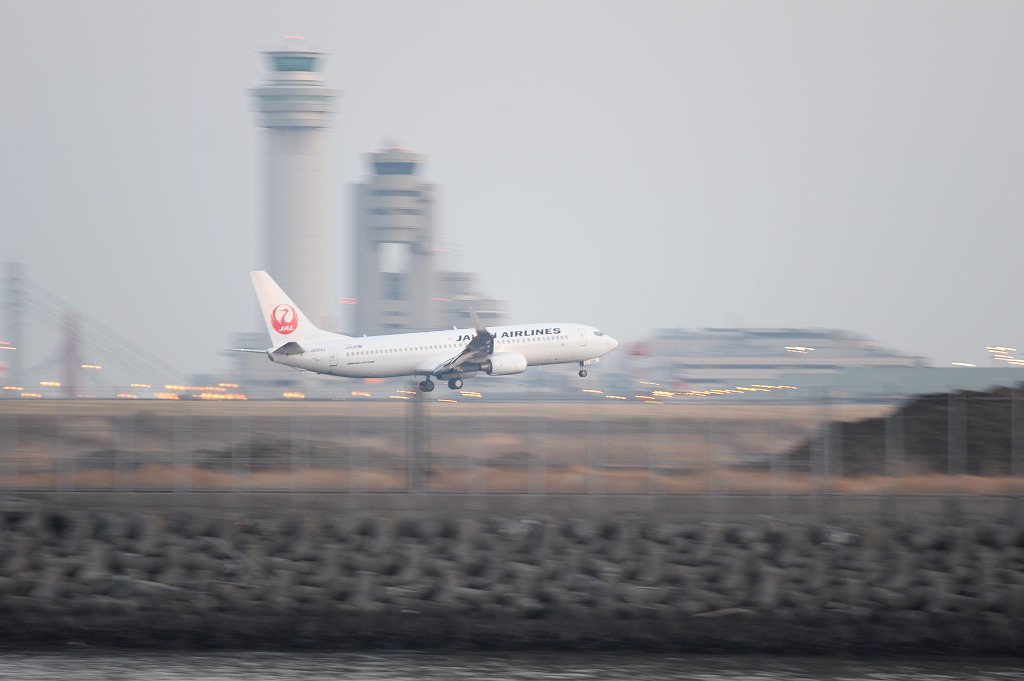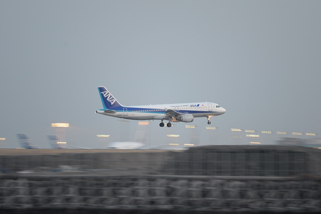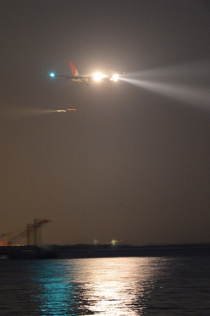 途中から海に映る着陸灯と機体をセットで撮りたくてたくさん撮ったのですが、