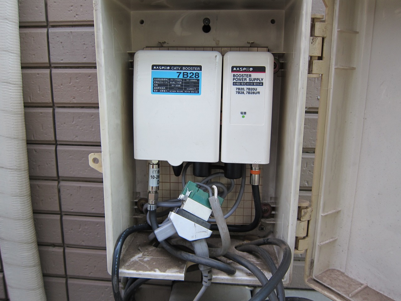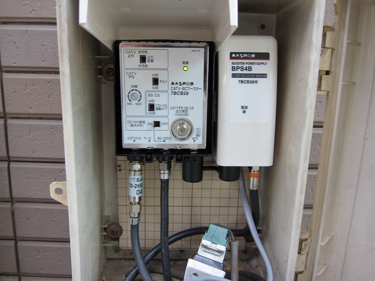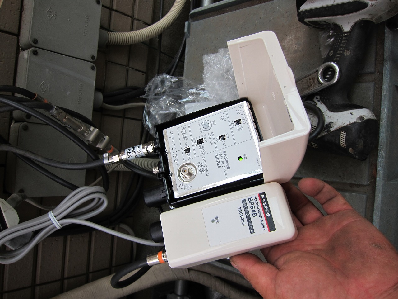 ケーブル、BS、CS混合機能付きブースターに仮付けします。