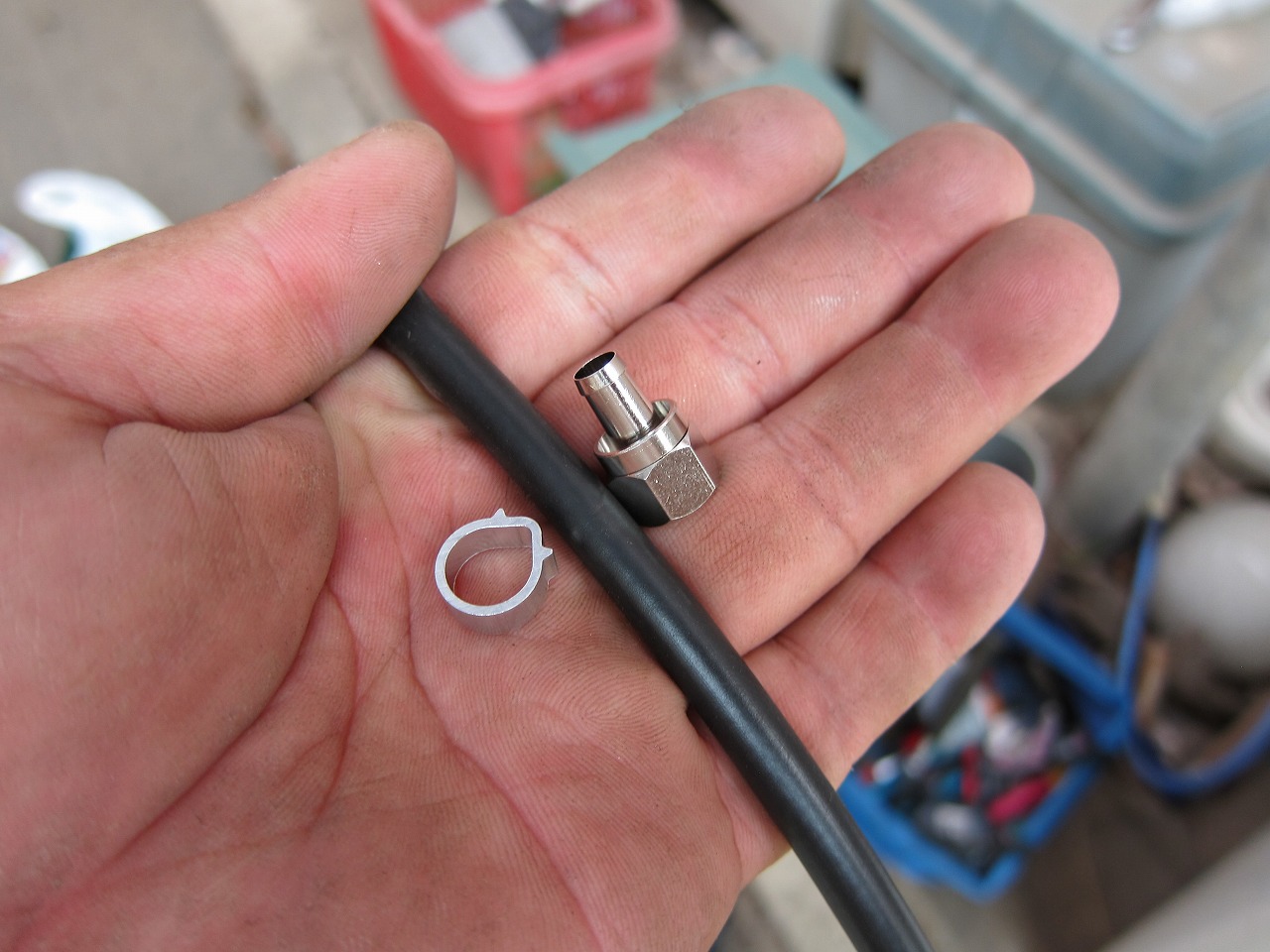 同軸ケーブルにF型コネクターを取付して。