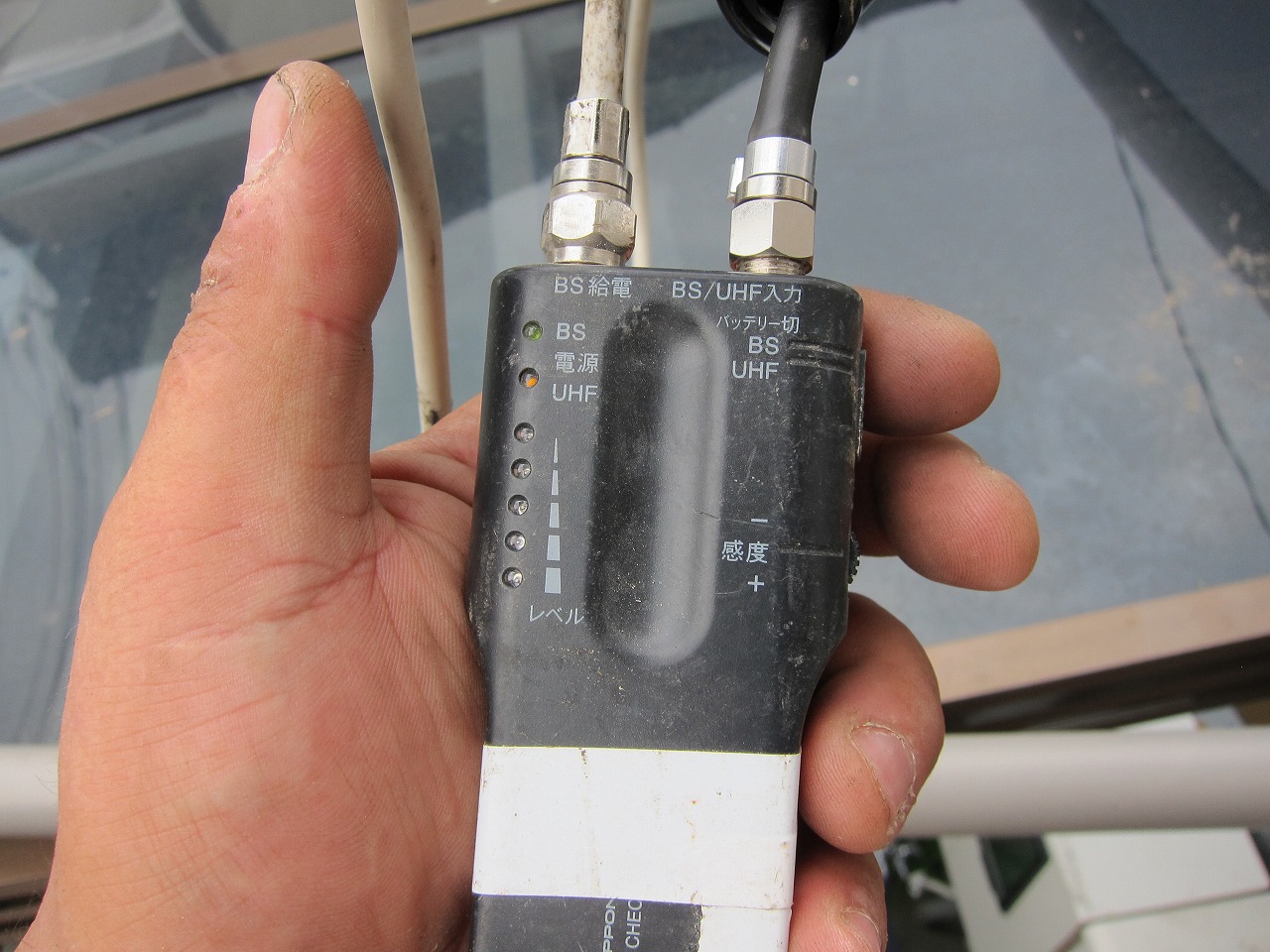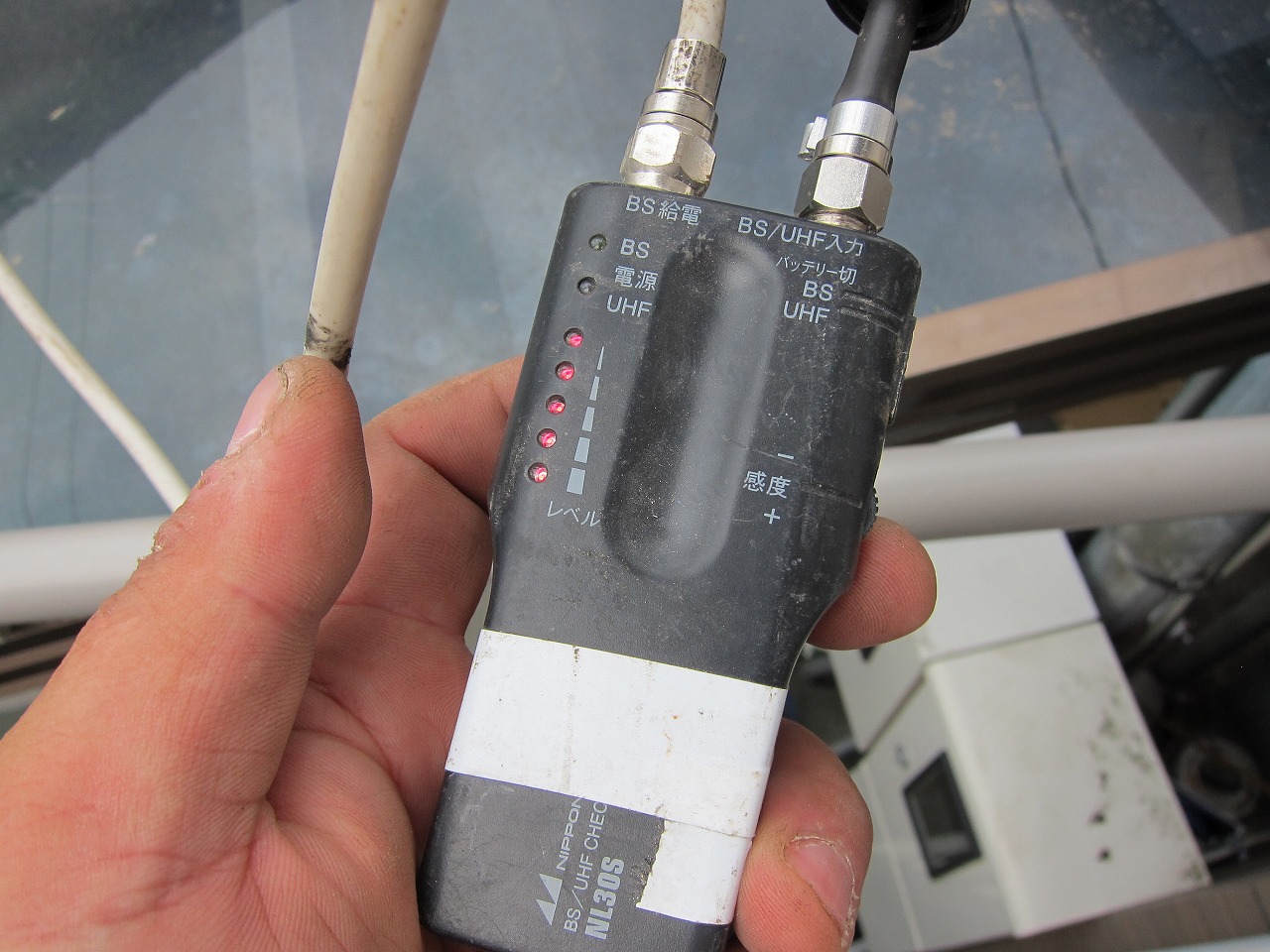 アンテナを再調整、ブースター直前でデシベルチェック、分配器交換(未遂)、ターミナル交換(1室)と順番にきてターミナル交換でレベルが出ました。これが分配器交換未遂の理由です。買ってきたのに…。