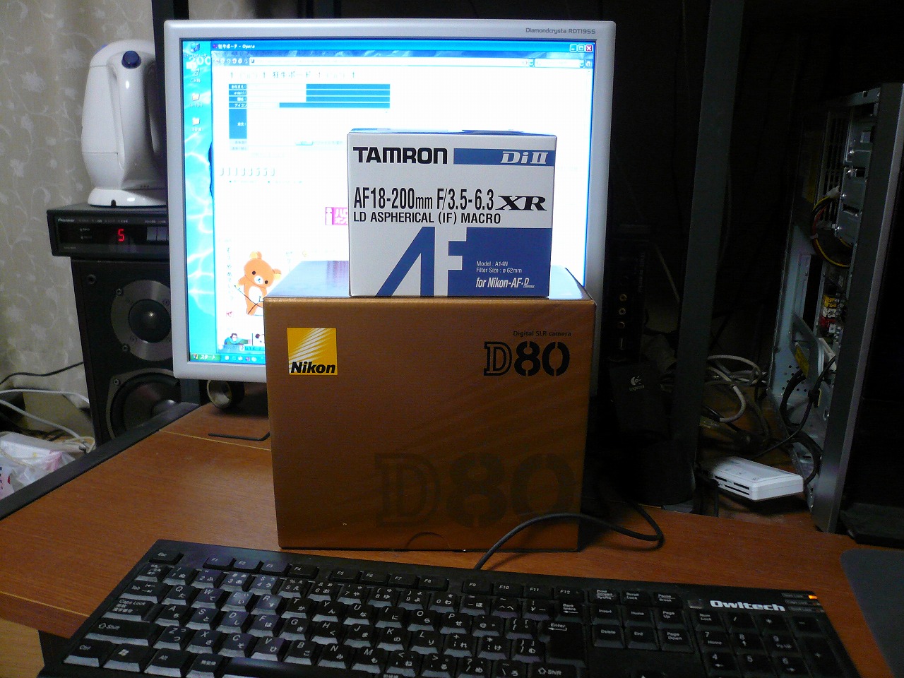 ニコンD80本体、タムロン18-200レンズ、2gSD、液晶保護フィルムで124800円。