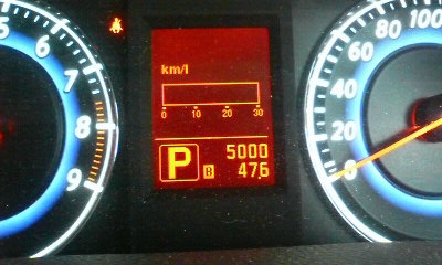 前回の給油時から4.5日は短距離ばかりで、L/5kmとか燃費計が表示してた。