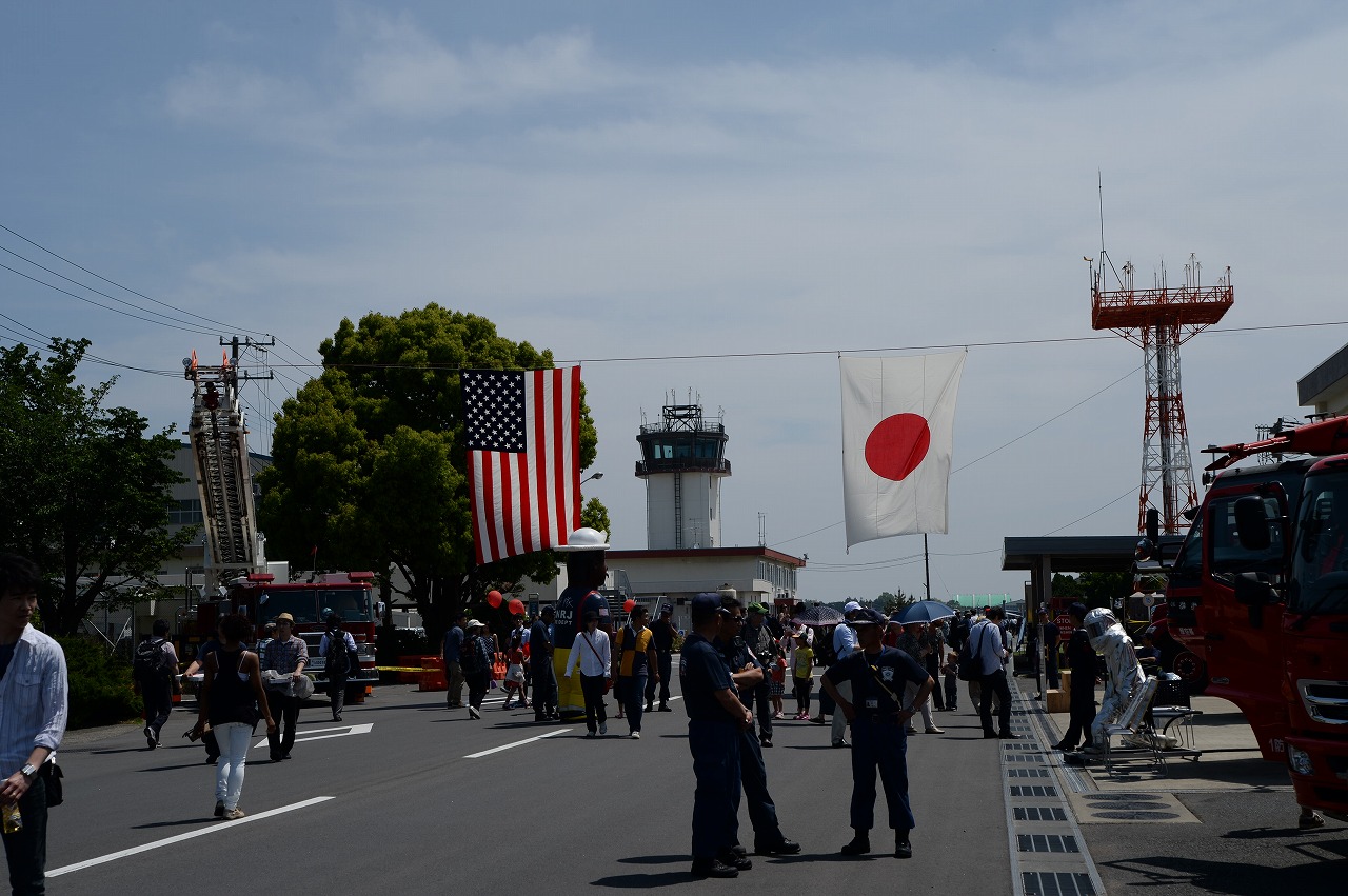 更に進むとエプロンの前に日章旗と星条旗が。
