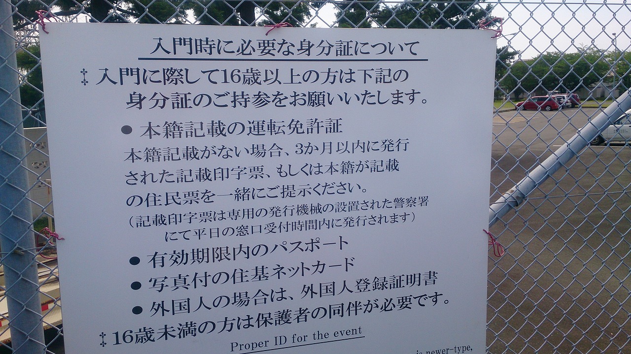 厚木基地はアメリカなので入場にパスポートか免許証+住民票が必要です。