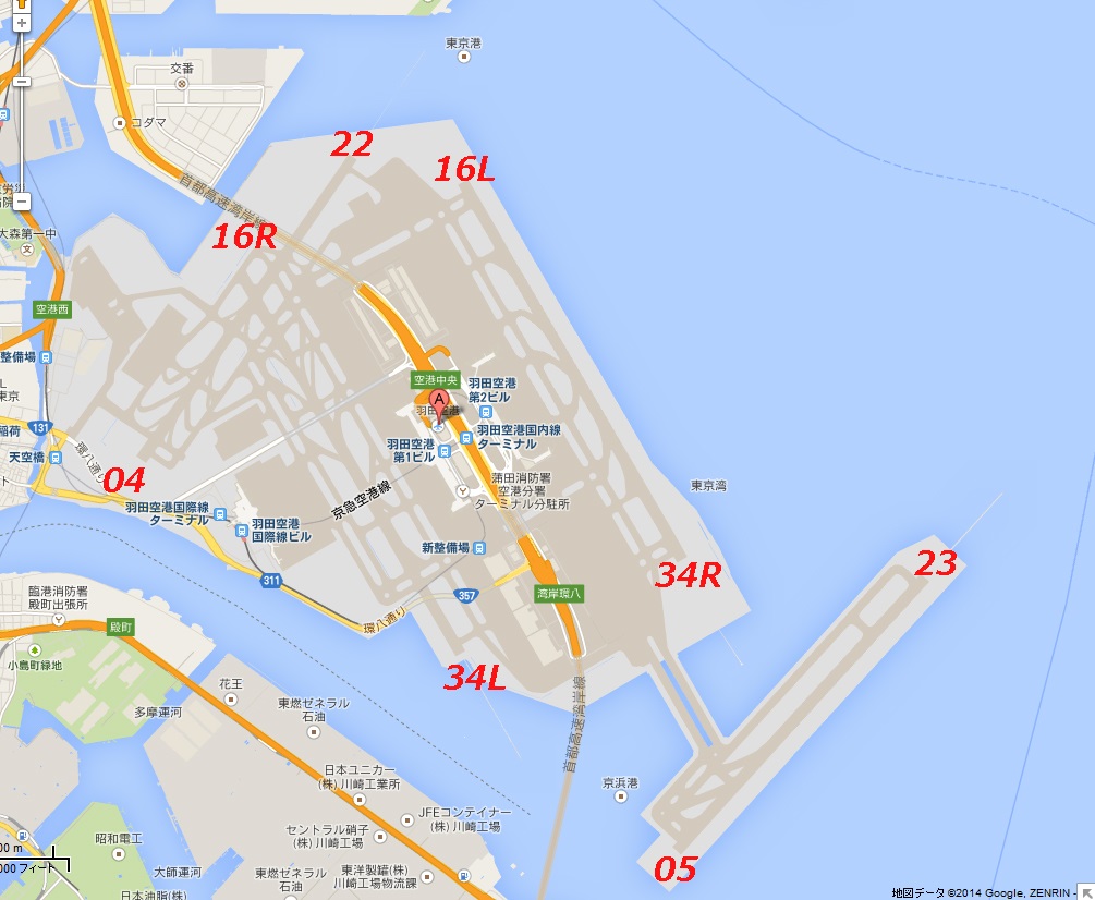 今日の風向きだと図の22と23の滑走路に降ります。