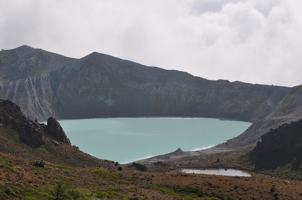 湯釜は青かった。