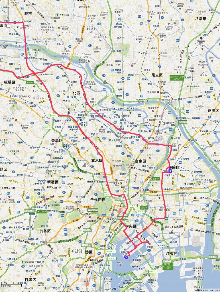 晴海はテキトーに走れば着くのですが、スカイツリーは行ったことがありません。
