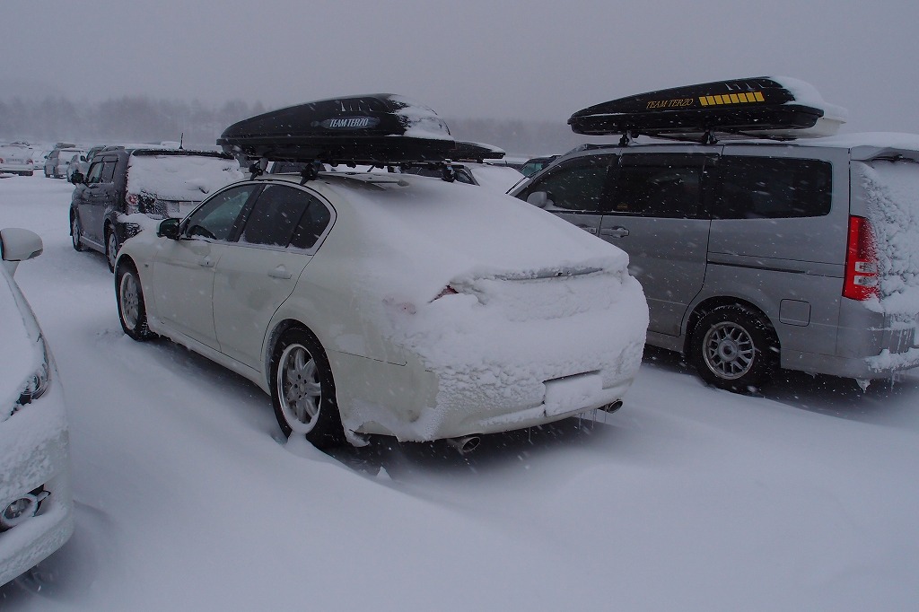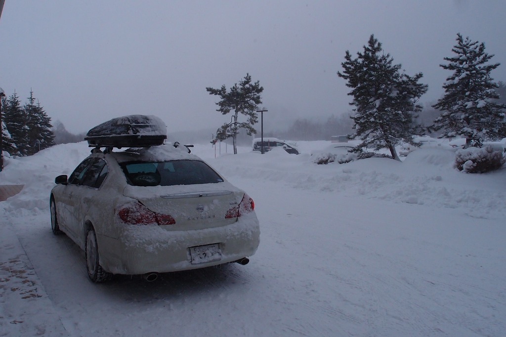 ほどほどに滑って帰ってくるとスカイラインがスカイラインチェリーに変身してました。