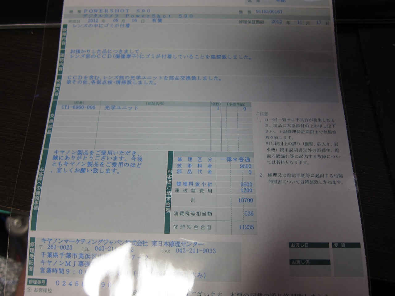 CCDにゴミがついていたそうです。修理じゃなくてASSY交換じゃん。