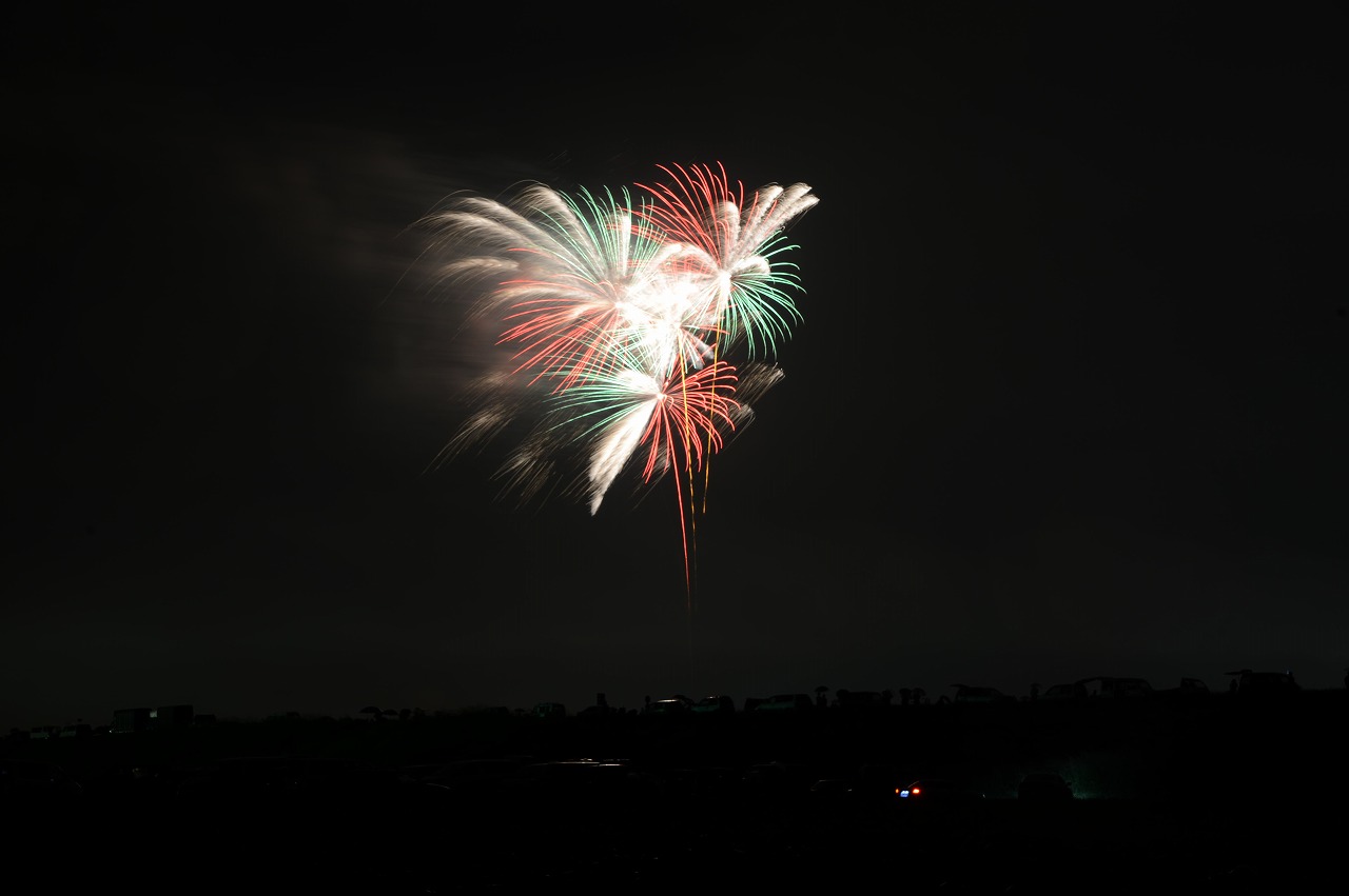 雨が道路を濡らす状況で半信半疑で熊谷に花火を撮りに行きました。